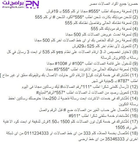 دليل اكواد اتصالات Etisalat والارقام المختصرة وخدمة سلفني ومعرفة الرصيد برامج نت
