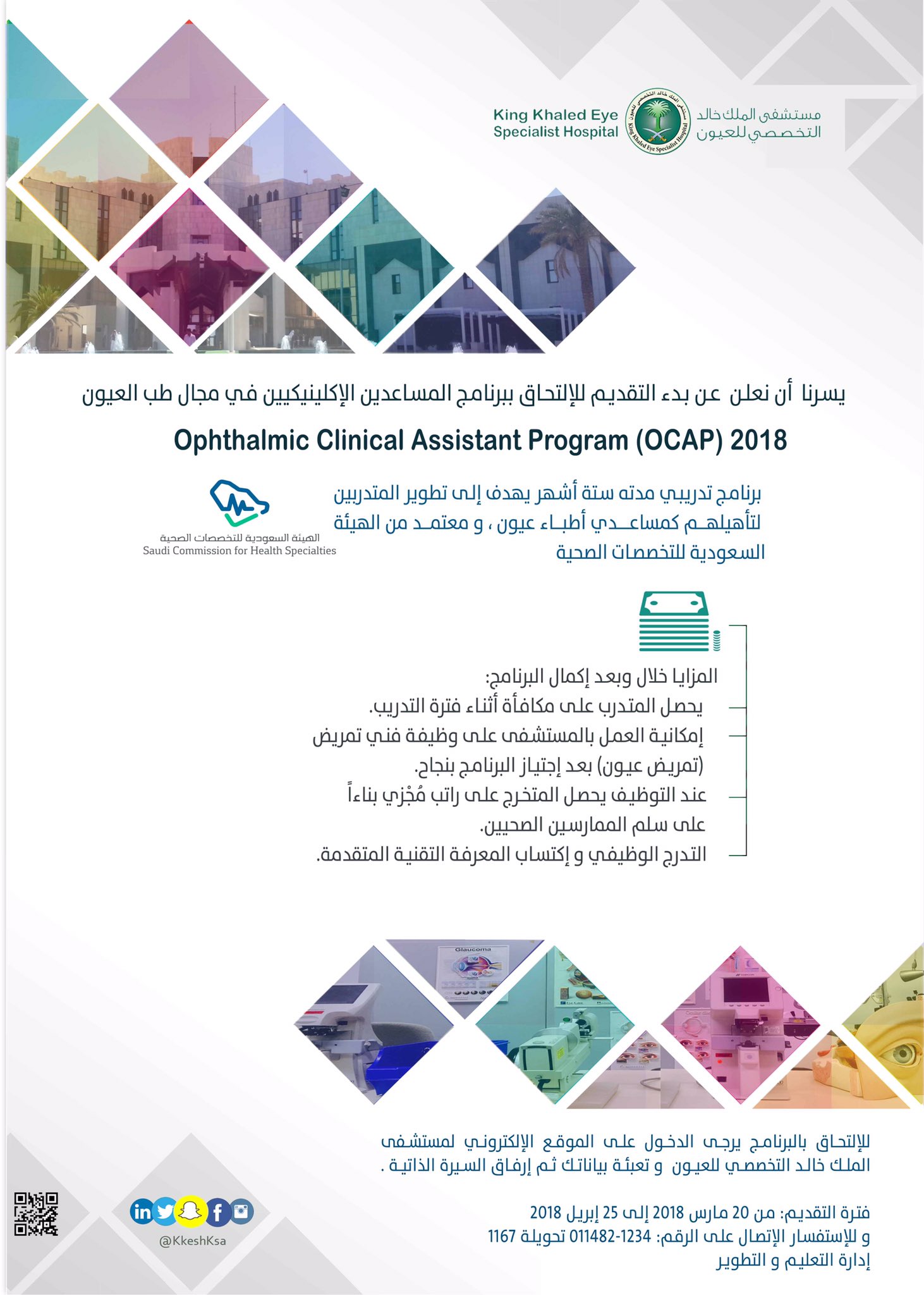 مستشفى الملك خالد التخصصي للعيون Kkesh على تويتر يعلن Kkeshksa عن بدء التقديم للإلتحاق ببرنامج المساعدين الإكلينيكيين في مجال طب العيون وهو برنامج تدريبي مدته ستة أشهر يهدف الى تطوير