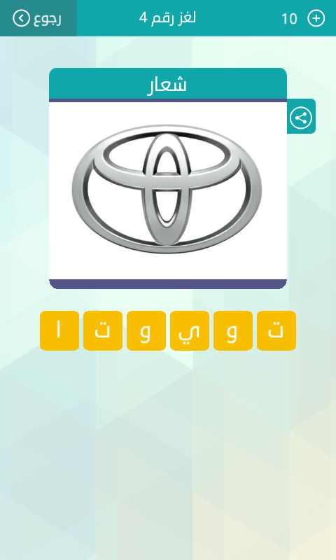 شعار من 6 حروف لعبة كلمات متقاطعة معلومة Ten