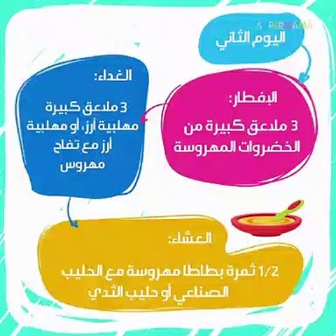 جدول طعام الطفل الرضيع مع افكار و وجبات من عمر خمس اشهر كروب العراقيات بيبي سنتر آرابيا