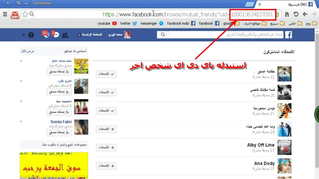 اعرف الاصدقاء المشتركين فى الفيس بوك بينك وبين اى شخص فقط من خلال الاى دى Id حمص المحترف