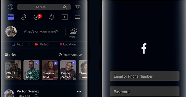 تحميل تطبيق الفيسبوك والماسنجر باللون الاسود Dark Facebook