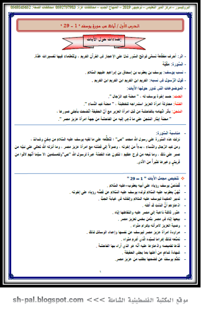 شرح الوحدة الأولى سورة يوسف لمبحث اللغة العربية للصف الثاني عشر المكتبة الفلسطينية الشاملة