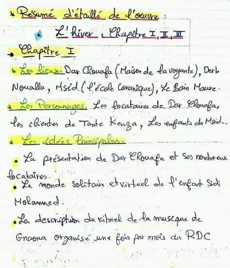 تلخيص رواية La Boite A Merveille للأولى بكالوريا بخط اليد