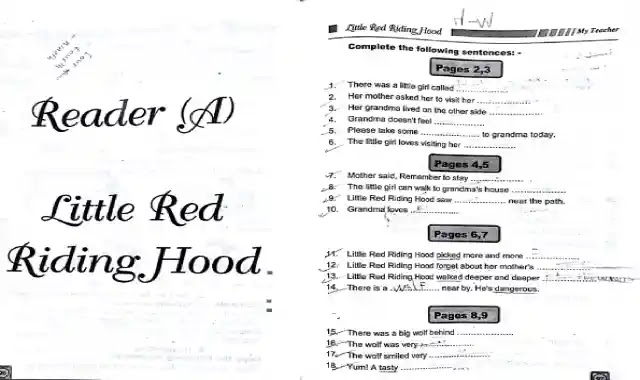 مذكرة اسئلة وتدريب على قصة The Little Red Riding Hood او قصة ذات الرداء الاحمر