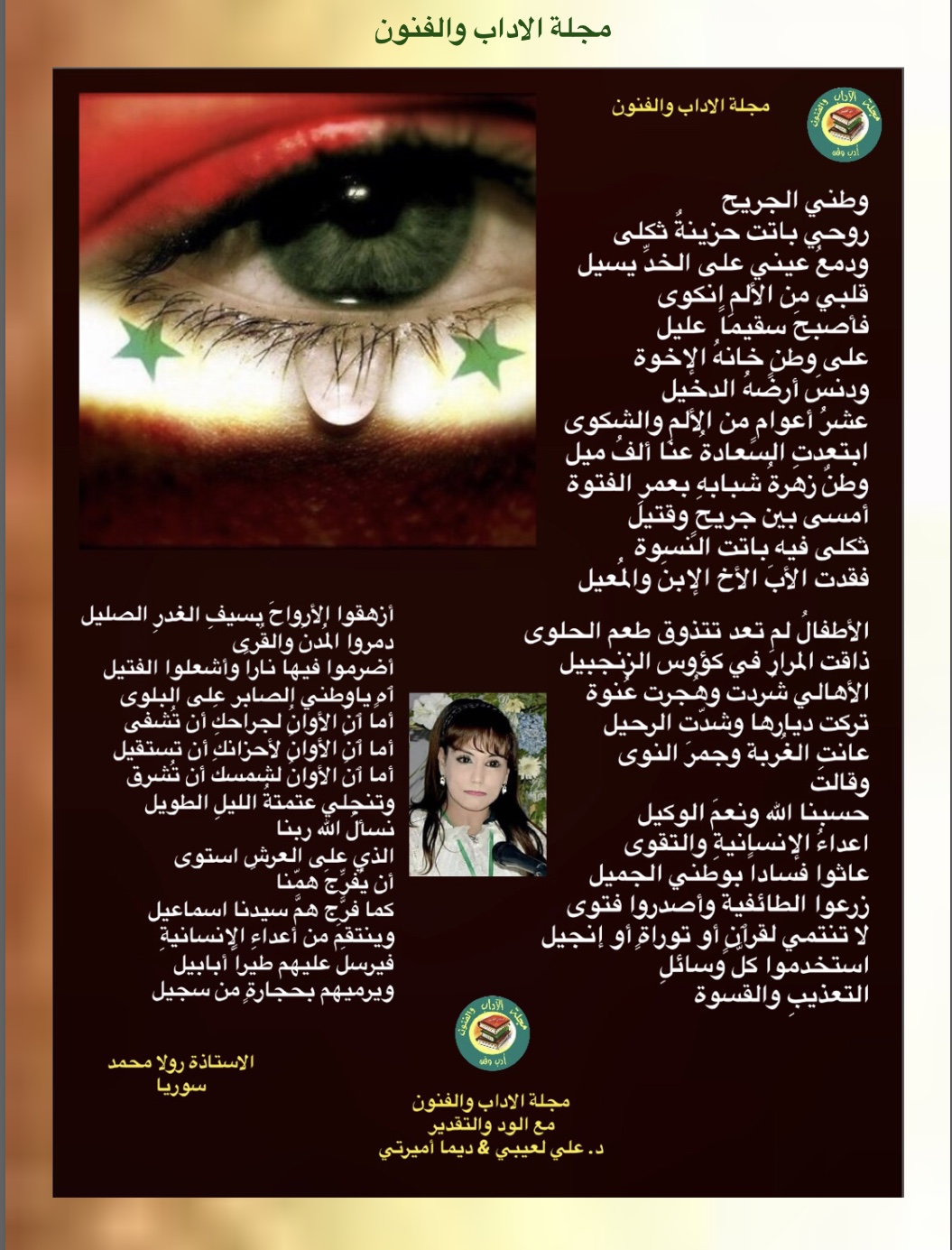 مجلة ايزيس الحلم الالكترونية أمسح دموعك يا وطني بقلم الشاعرة السورية لوجين رسلان